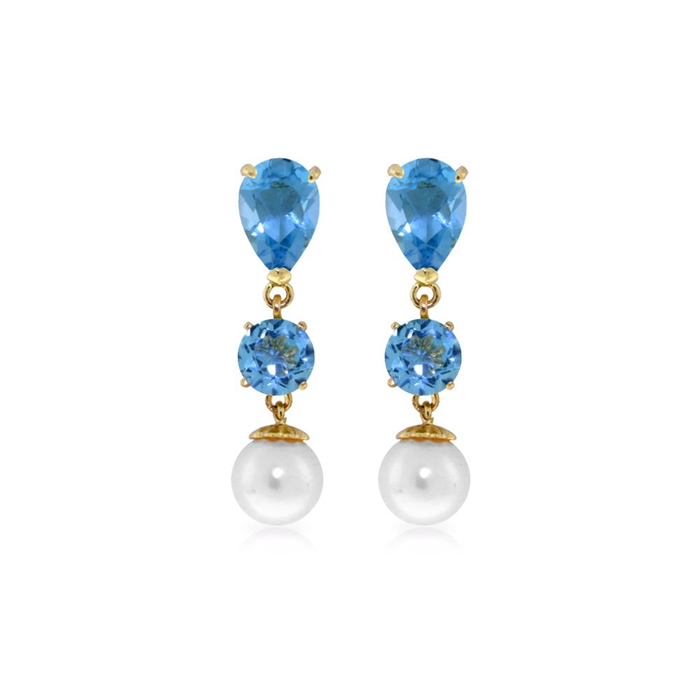 Genuine 14K Yellow Gold 10.5 ctw Blue Topaz & Pearl Earrings