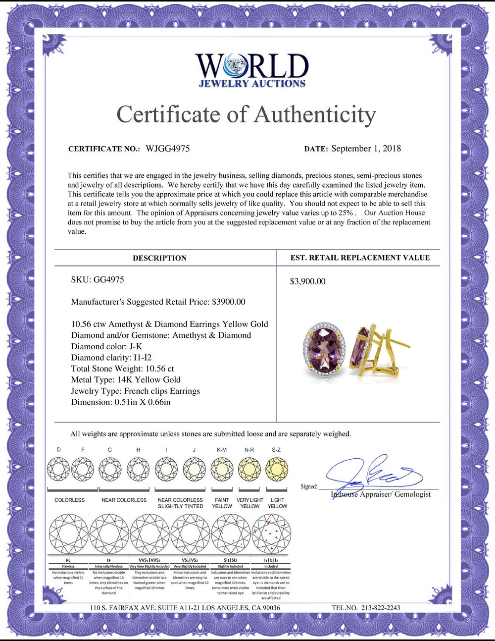 REF-128R3P - SKU: GG4975 ---- Genuine 10.56 ctw Amethyst & Diamond Earrings 14KT Yellow Gold