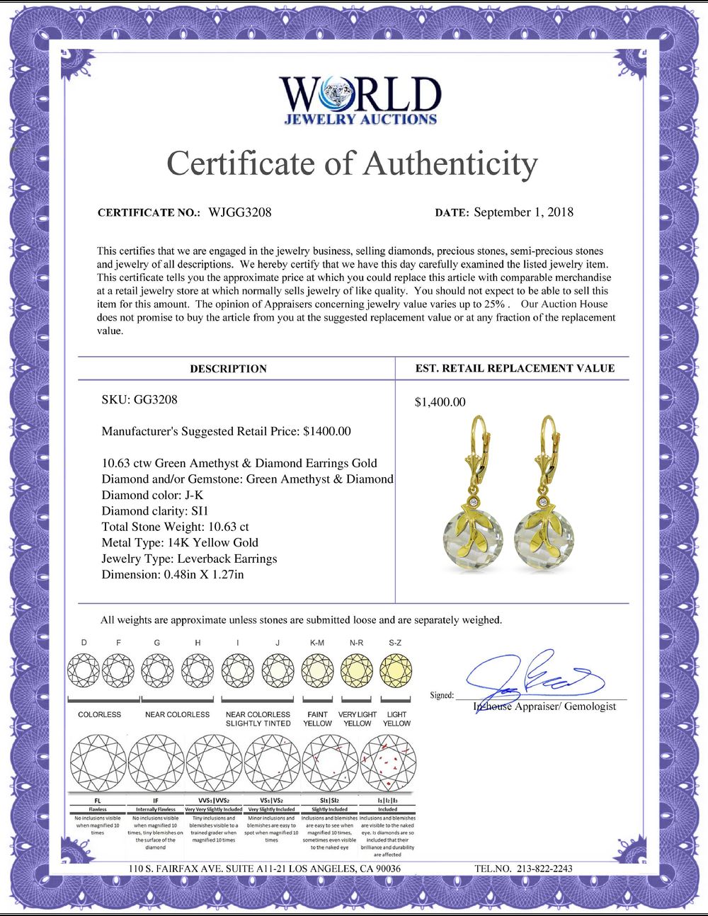 Genuine 14K Yellow Gold 10.63 ctw Green Amethyst & Diamond Earrings