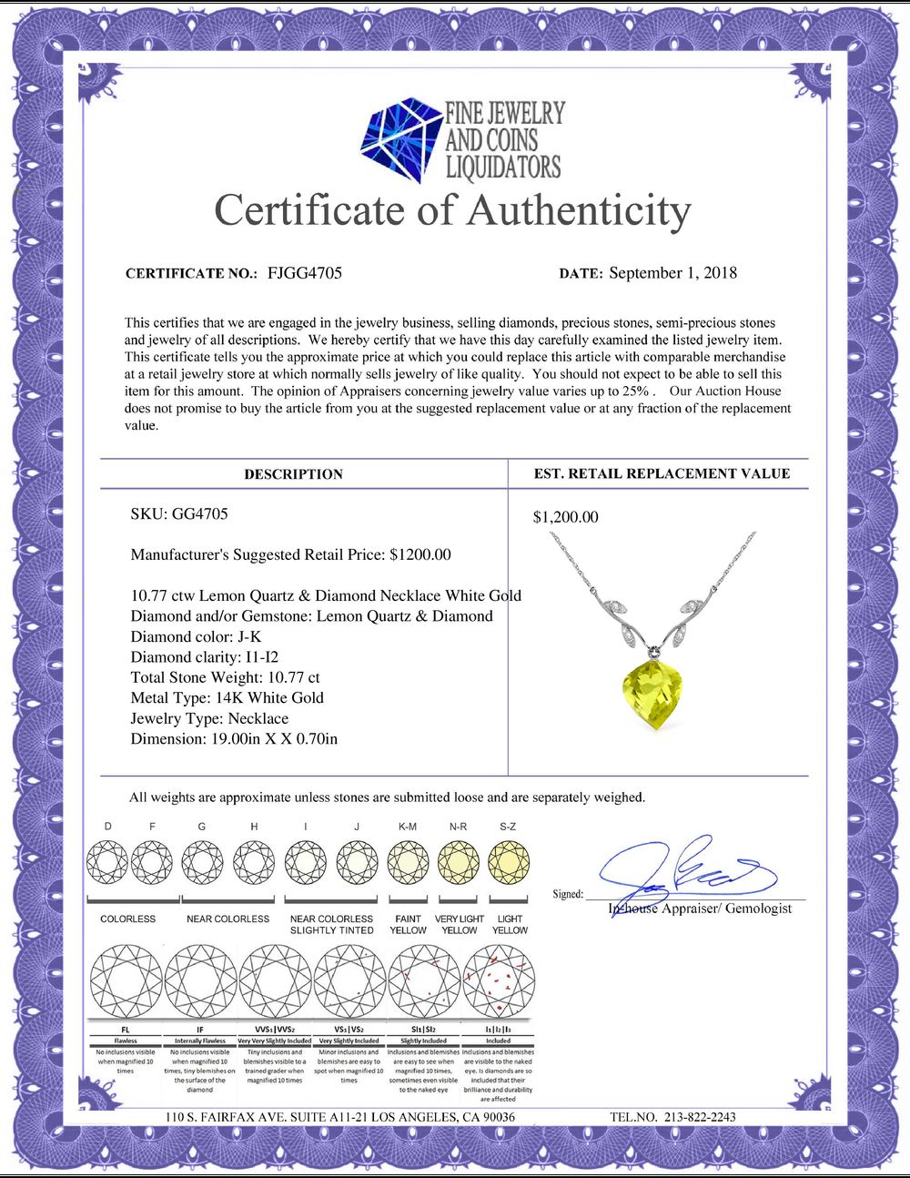 REF-39Z3N - SKU: GG4705 ---- Genuine 10.77 ctw Lemon Quartz & Diamond Necklace 14KT Rose Gold