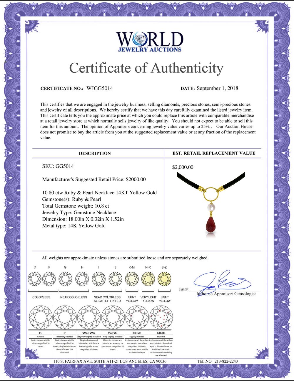 REF-64K4V - SKU: GG5014 ---- Genuine 10.80 ctw Ruby & Pearl Necklace 14KT Yellow Gold