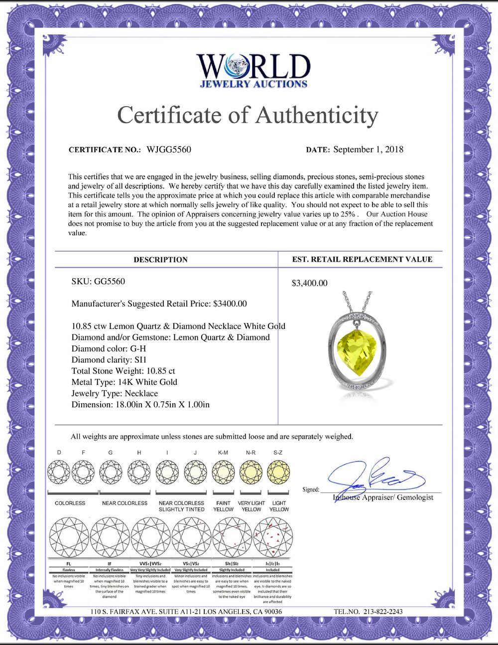 REF-111R2P - SKU: GG5560 ---- Genuine 10.85 ctw Lemon Quartz & Diamond Necklace 14KT White Gold