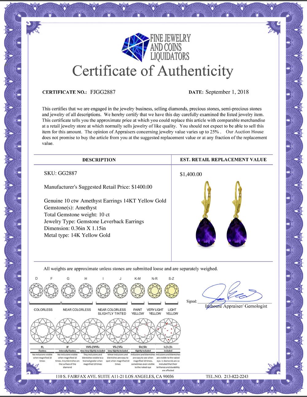 REF-45K3V - SKU: GG2887 ---- Genuine 10 ctw Amethyst Earrings 14KT Yellow Gold