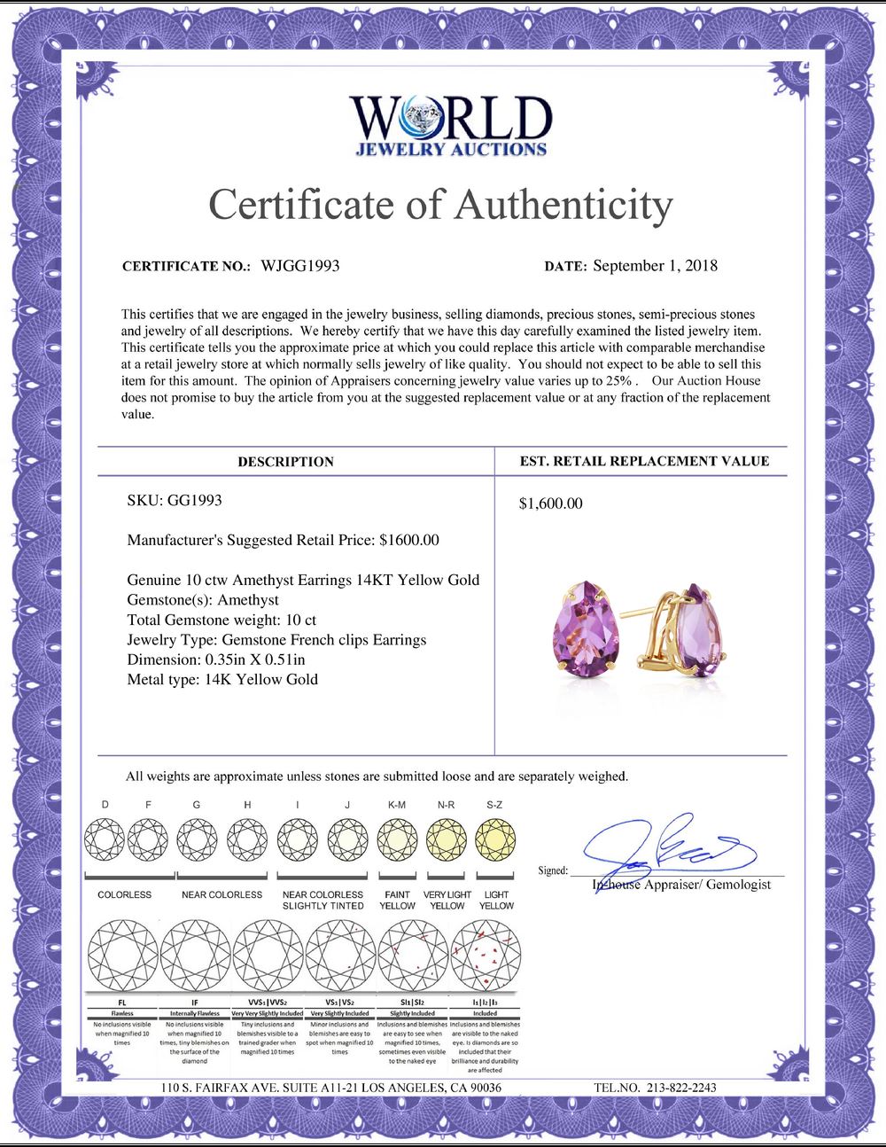 REF-50K7V - SKU: GG1993 ---- Genuine 10 ctw Amethyst Earrings 14KT Yellow Gold
