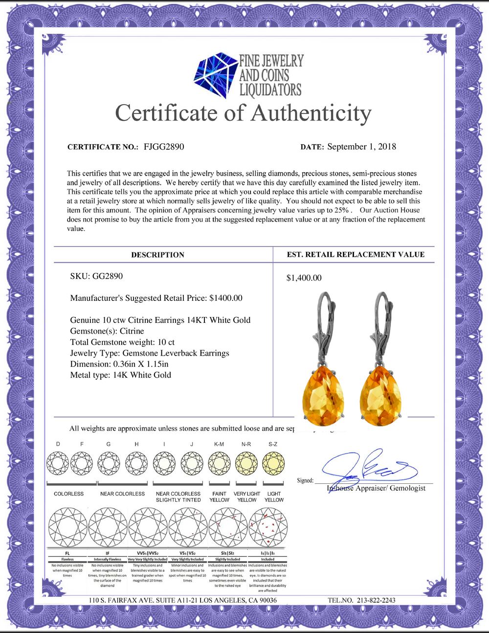 REF-45T3A - SKU: GG2890 ---- Genuine 10 ctw Citrine Earrings 14KT White Gold