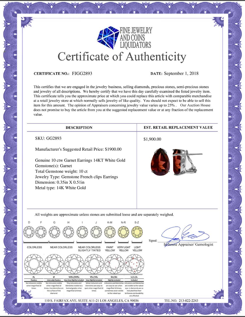 All Gia and EGL Diamonds are subject to availability due to consignors’ terms with us.