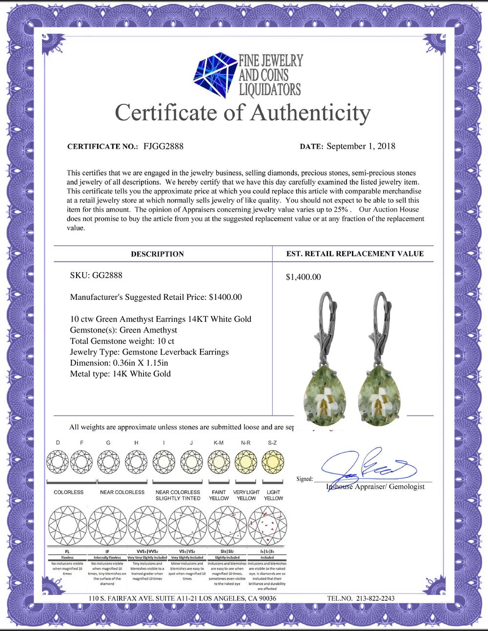 REF-45N3R - SKU: GG2888 ---- Genuine 10 ctw Green Amethyst Earrings 14KT White Gold