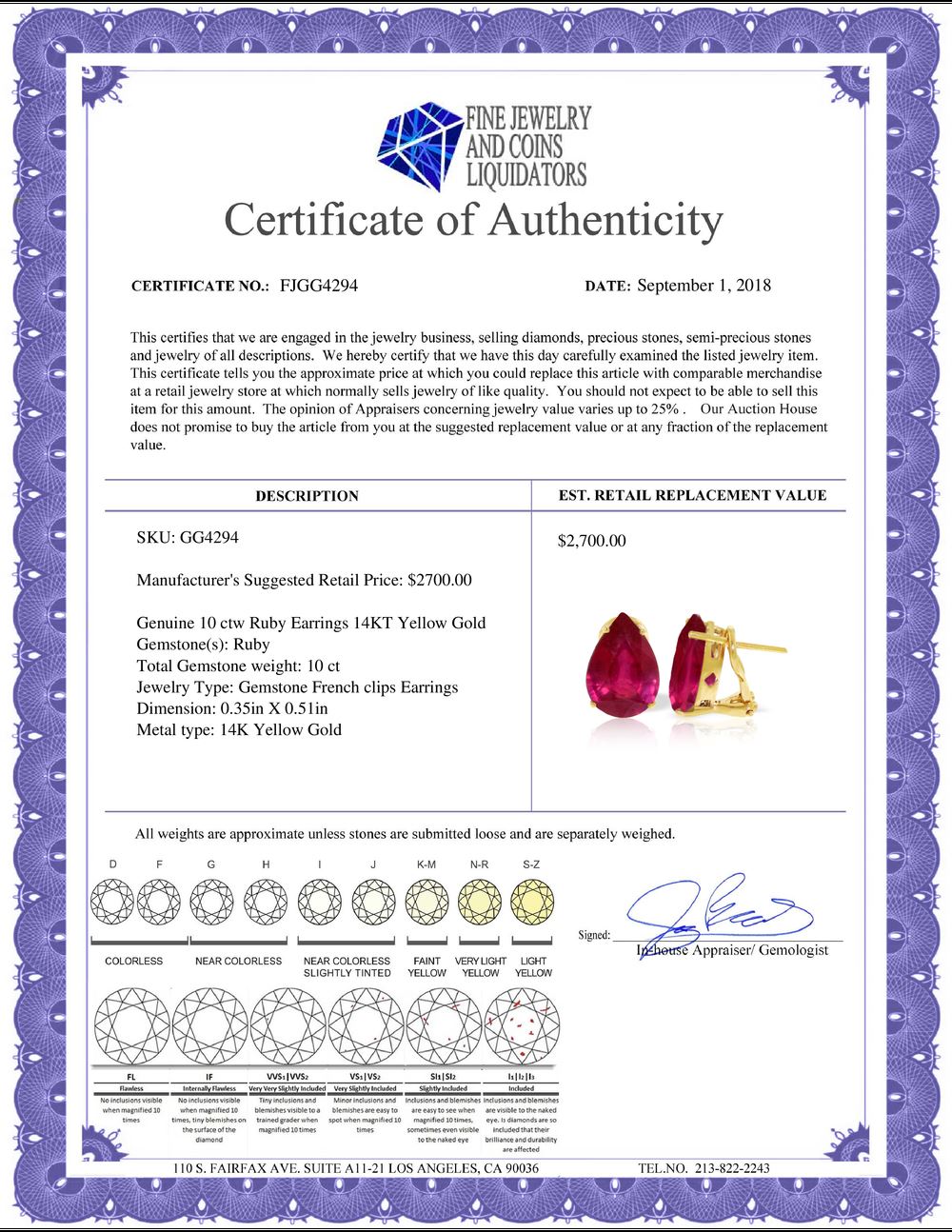 REF-89T5A - SKU: GG4294 ---- Genuine 10 ctw Ruby Earrings 14KT Yellow Gold