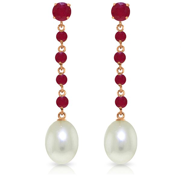 REF-37Y8F ---- SKU:GG-3250 ---- Manufacturer's Suggested Retail Price: $1200.00 ---- Genuine 14K Rose Gold 10 ctw Ruby & Pearl Earrings