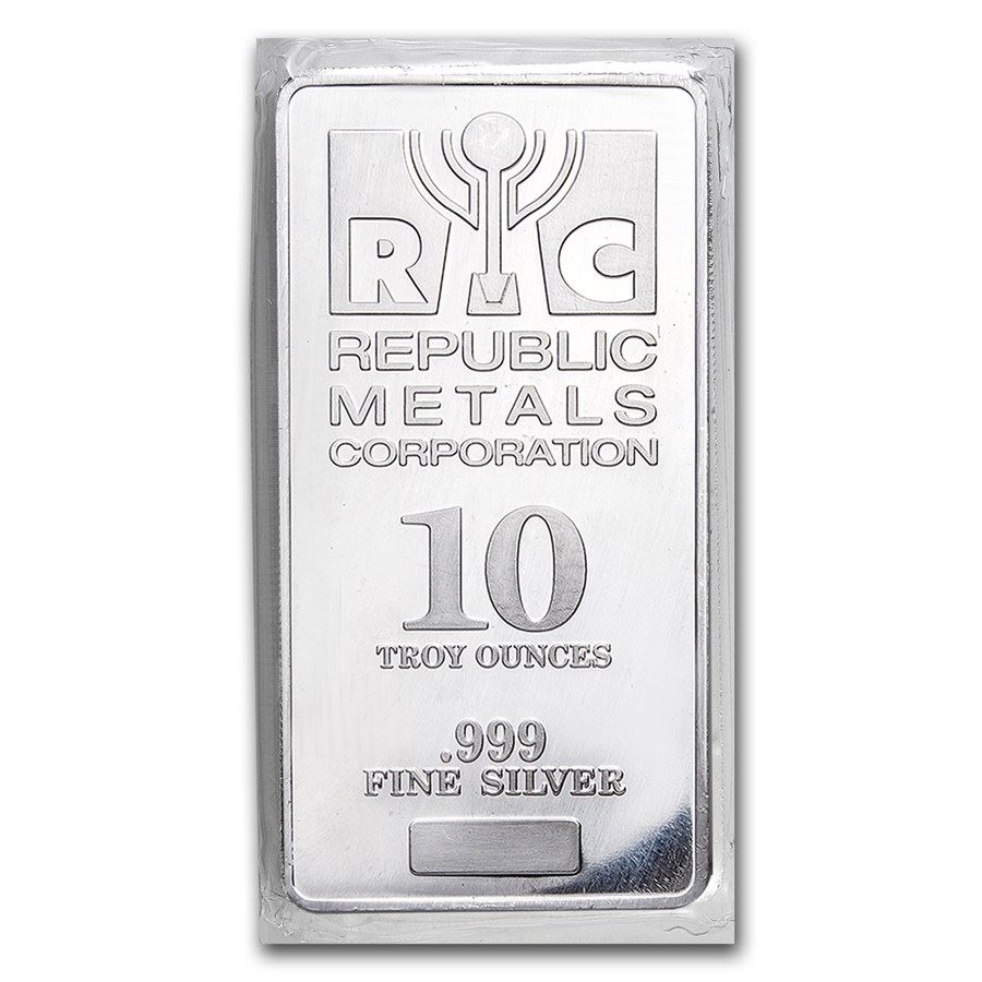 SKU: 89181 - One piece Genuine 10 oz 0.999 Fine Silver Bar - Republic Metals Corp