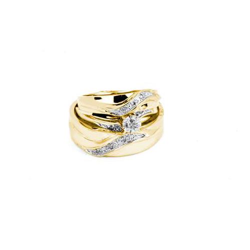 Manufacturer's Suggested Retail Price - $1260.00 ---- 10K Yellow Gold Jewelry 0.15 ctw Diamond Trio Ring Set - WJA14860 ---- Main Stone: Diamond ---- Main Stone Total Weight: 0.15 ctw ---- Diamond Color: I-J ---- Diamond Clarity: SI2-I1 ---- Ring Size: Ladies - 7 (US) & Men's - 10 (US) ---- Metal Type: Genuine 10K Gold ---- Metal Weight: 5.86 grams ---- Delivery: Ships within 10 business days or faster ---- ID#L27Y7-WGD14860