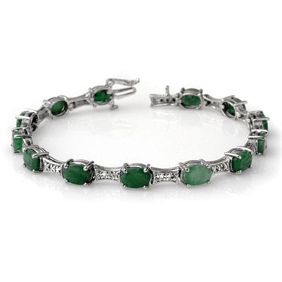 Genuine 11.04 ctw Emerald & Diamond Bracelet White Gold * MSRP $3170 ---- Diamond: 6 Round cut @ 0.04 ctw---- Clarity: SI-I---- Color: H-K----Gemstone: Natural Emerald----Gemstone color: Green----Gemstone quality: Good-to-Very Good----Gemstone Cut & Weight: 13 Oval cut @ 11.0 ctw----Metal Purity & Color : 10K Gold-White----Gold weight: 10.0 grams----Dimension: Approx. 7 x 3/8----Shipping: Within 15 business days