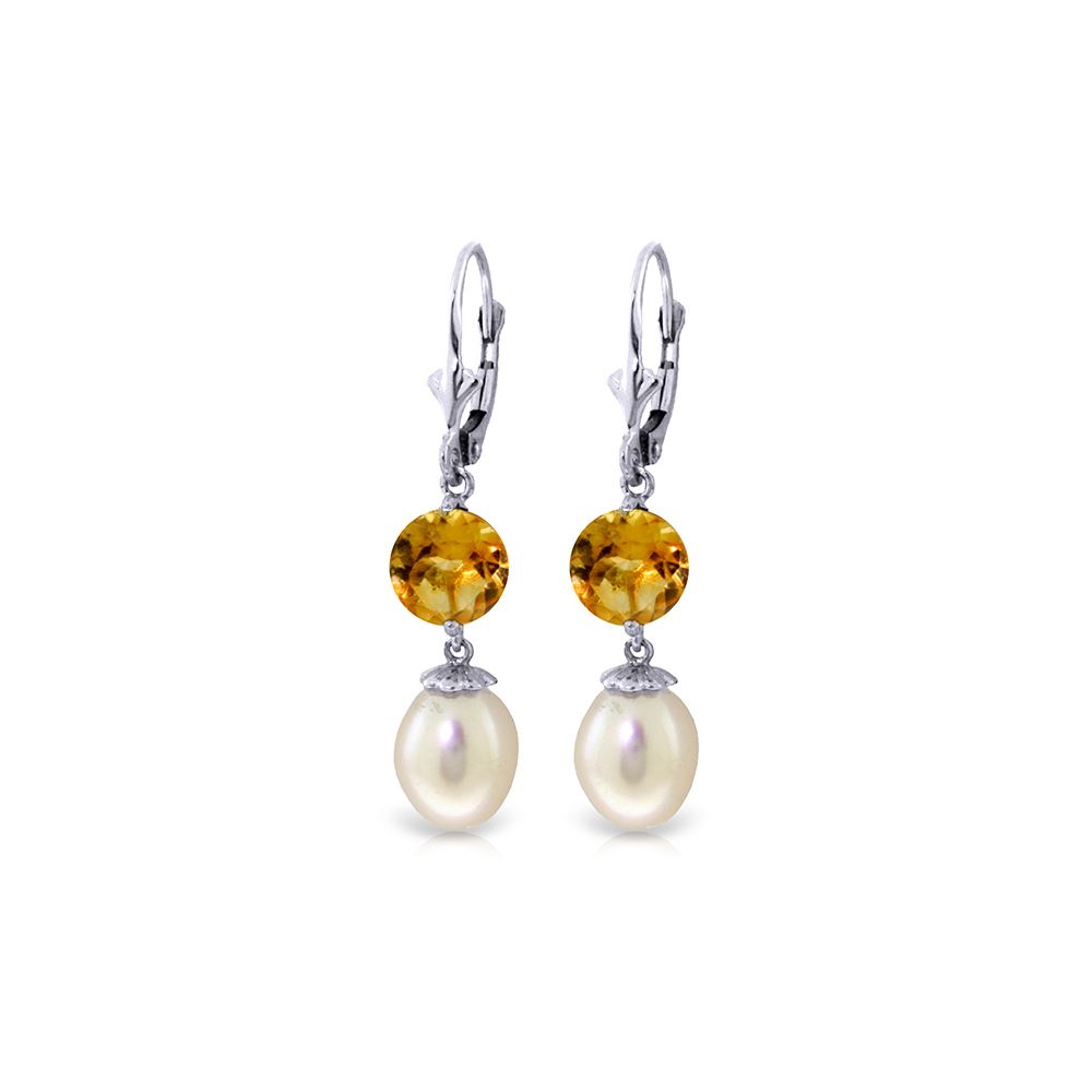 Genuine 14K White Gold 11.1 ctw Pearl & Citrine Earrings