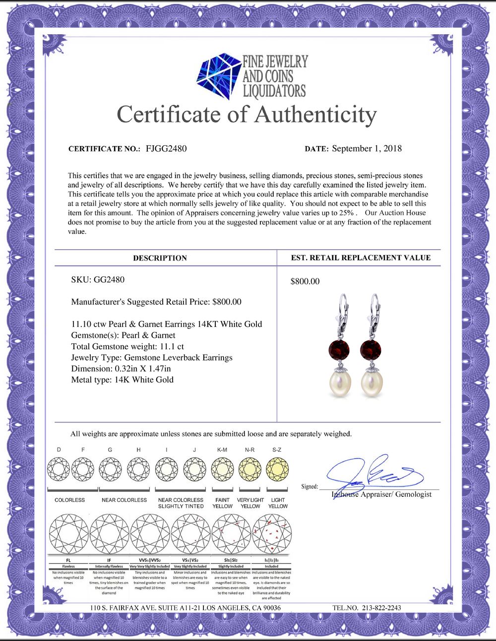 REF-26W6Y - SKU: GG2480 ---- Genuine 11.10 ctw Pearl & Garnet Earrings 14KT Rose Gold