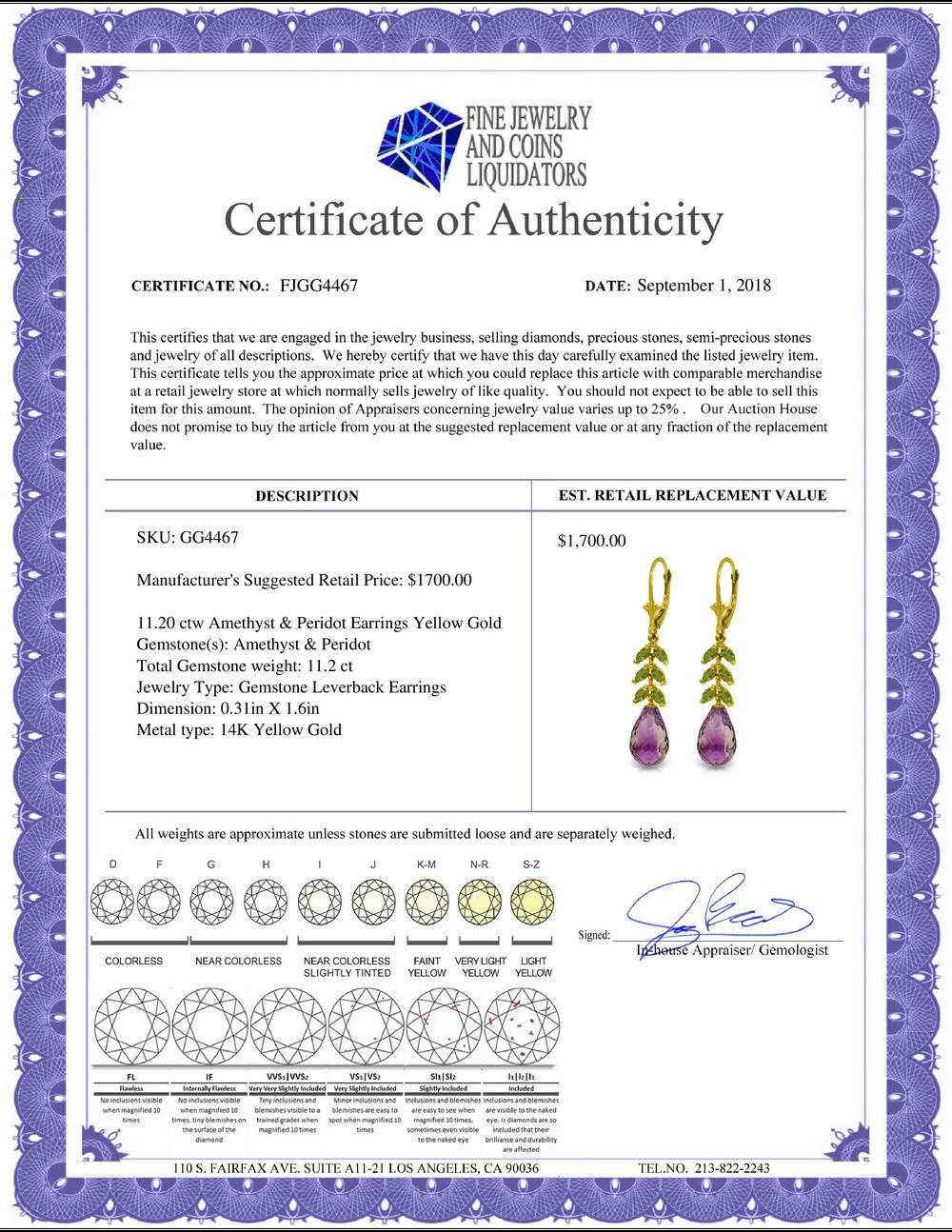 Genuine 14K Yellow Gold 11.2 ctw Amethyst & Peridot Earrings
