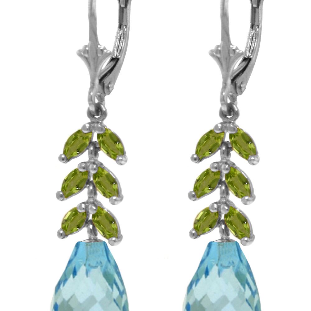 Genuine 14K White Gold 11.2 ctw Blue Topaz & Peridot Earrings