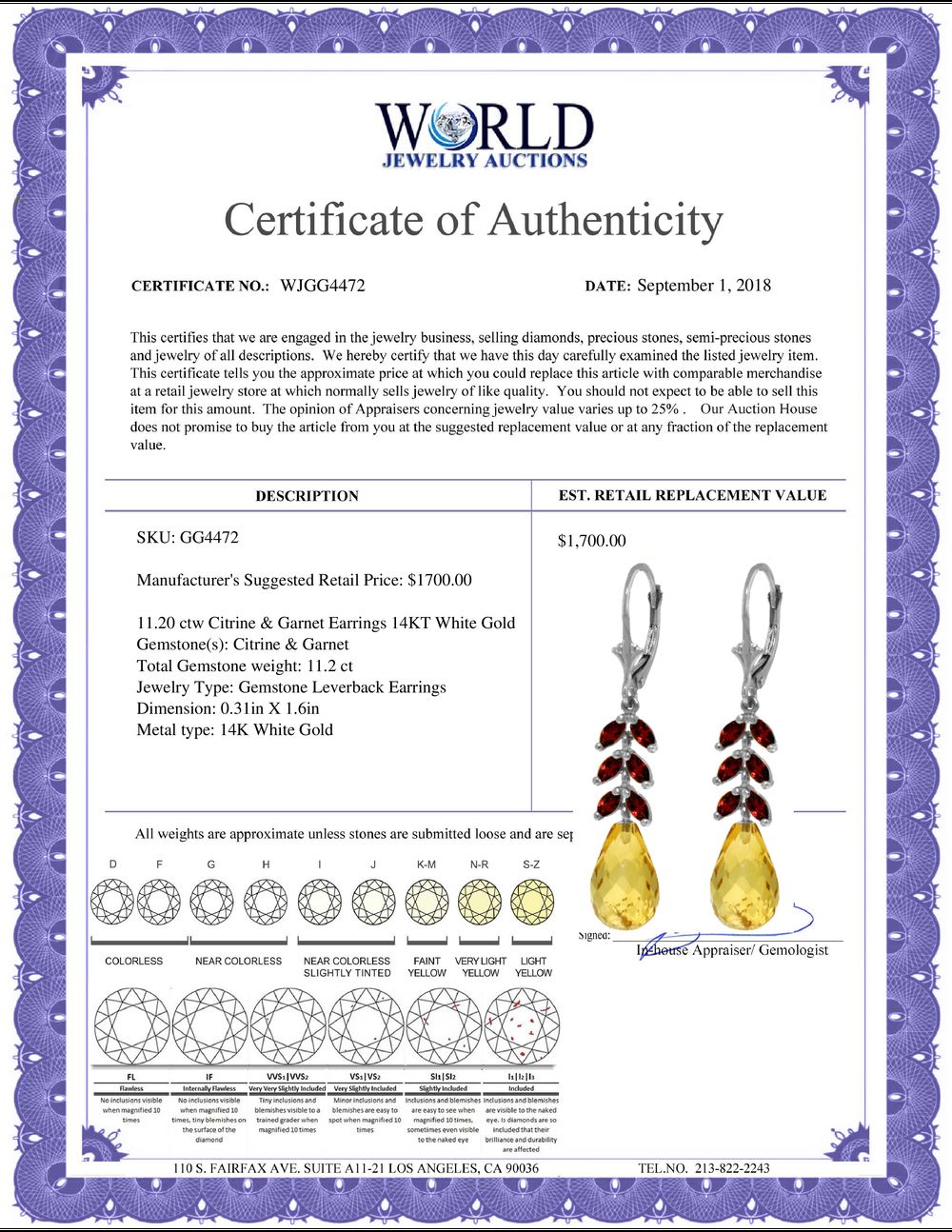 REF-56N2R - SKU: GG4472 ---- Genuine 11.20 ctw Citrine & Garnet Earrings 14KT White Gold