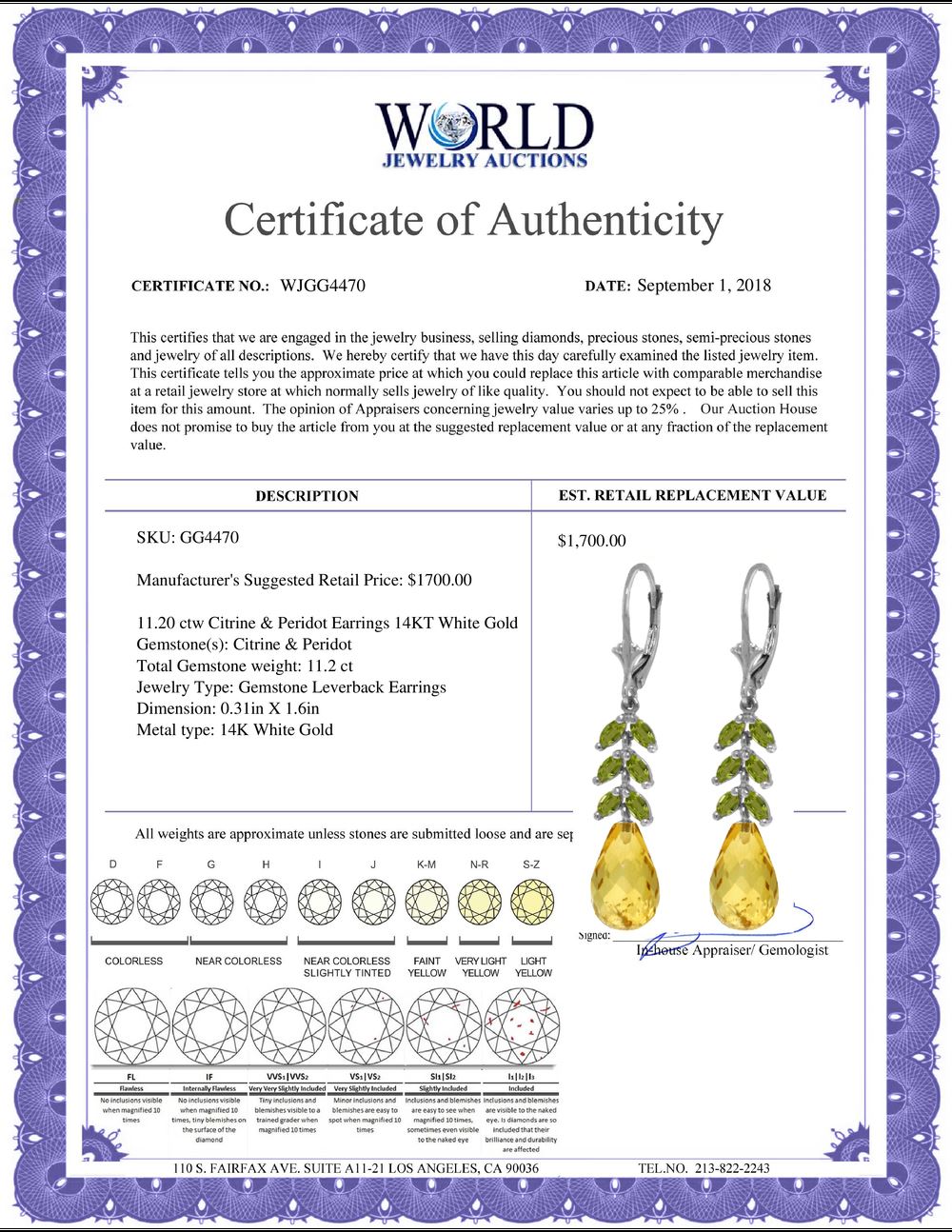 REF-56Y2F - SKU: GG4470 ---- Genuine 11.20 ctw Citrine & Peridot Earrings 14KT Rose Gold