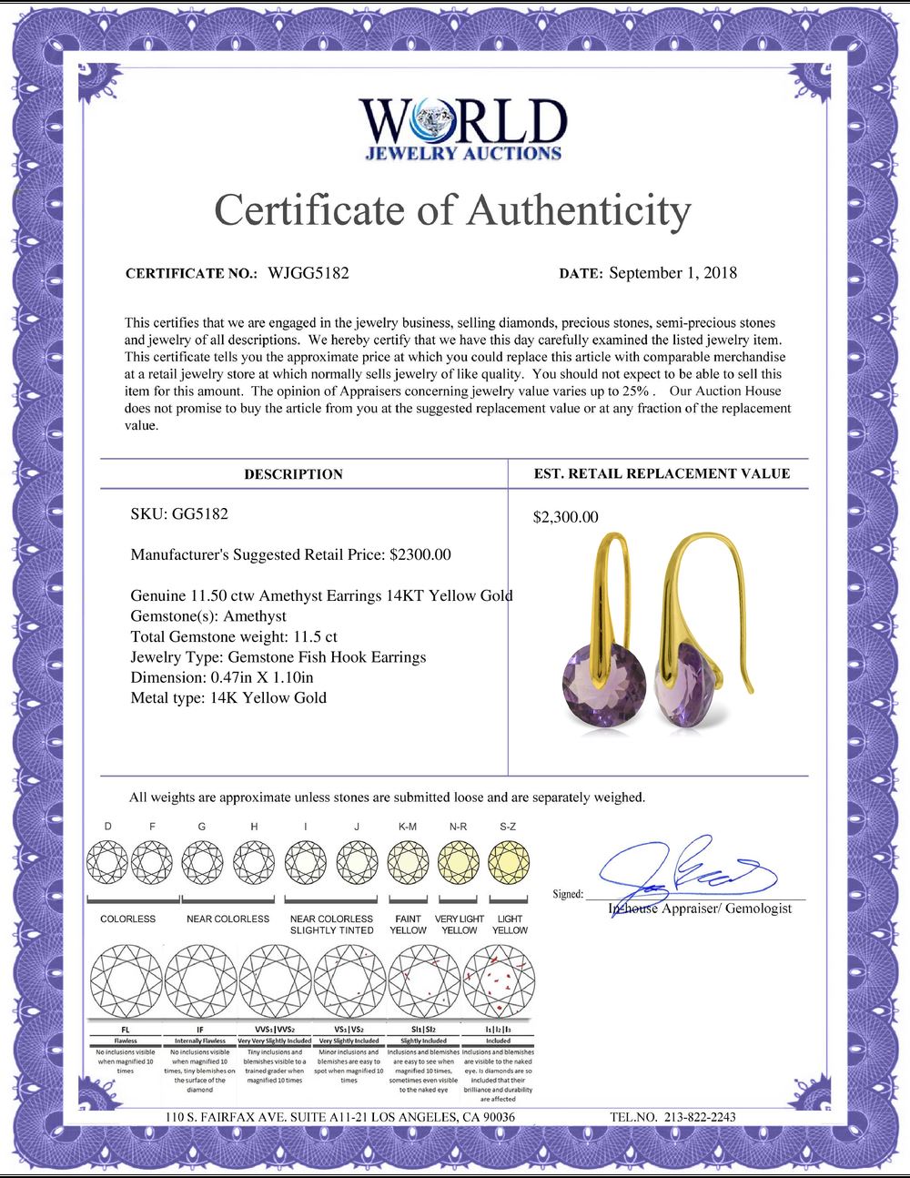 REF-74K6V - SKU: GG5182 ---- Genuine 11.50 ctw Amethyst Earrings 14KT Yellow Gold