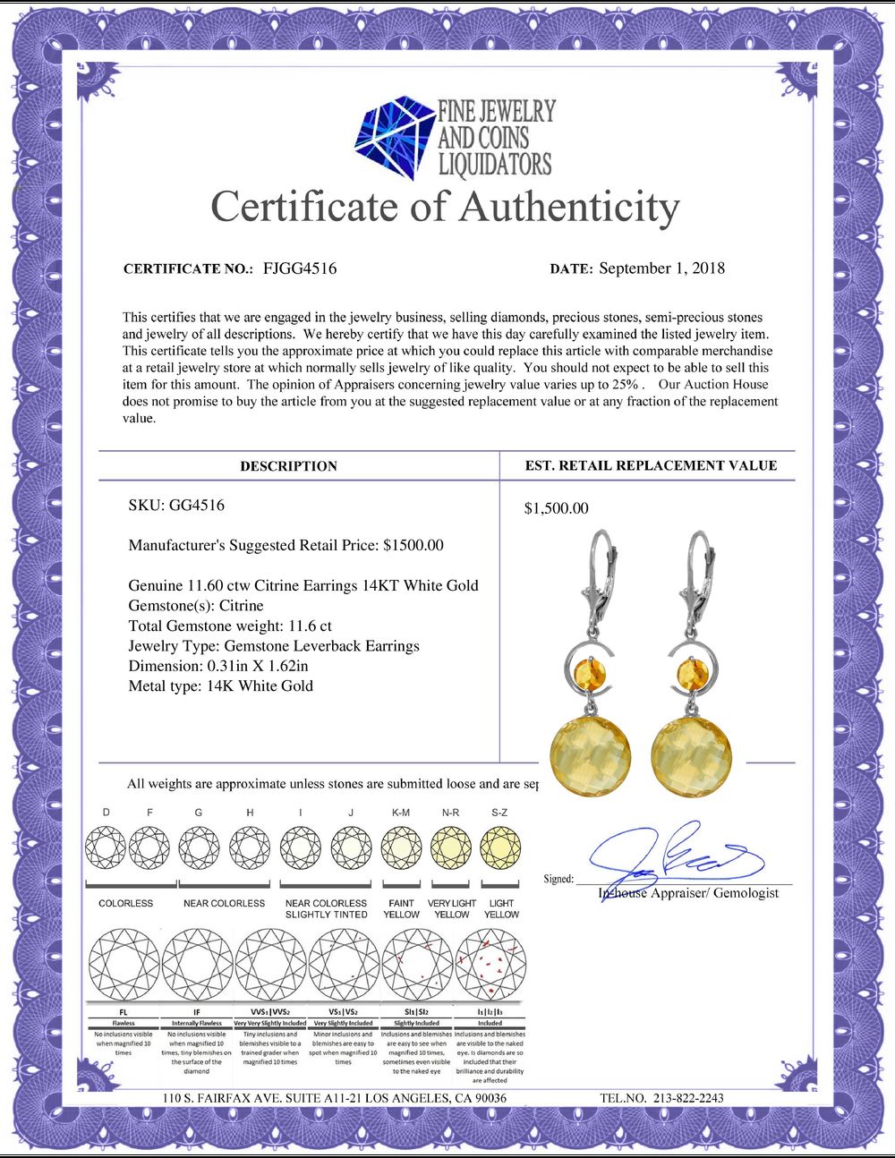 All Gia and EGL Diamonds are subject to availability due to consignors’ terms with us.