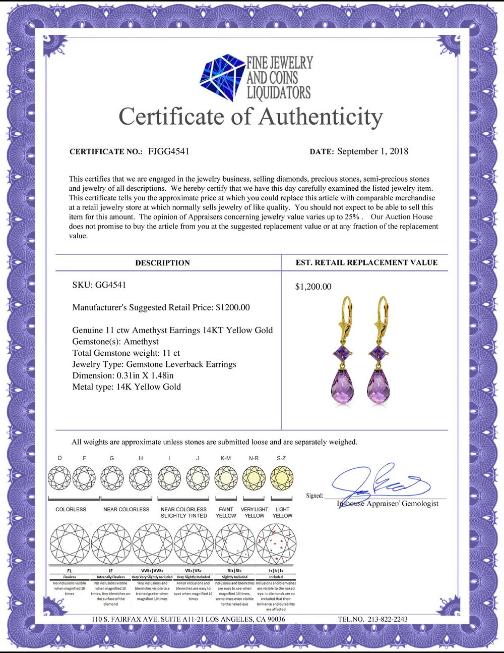 REF-39Y3F - SKU: GG4541 ---- Genuine 11 ctw Amethyst Earrings 14KT Yellow Gold