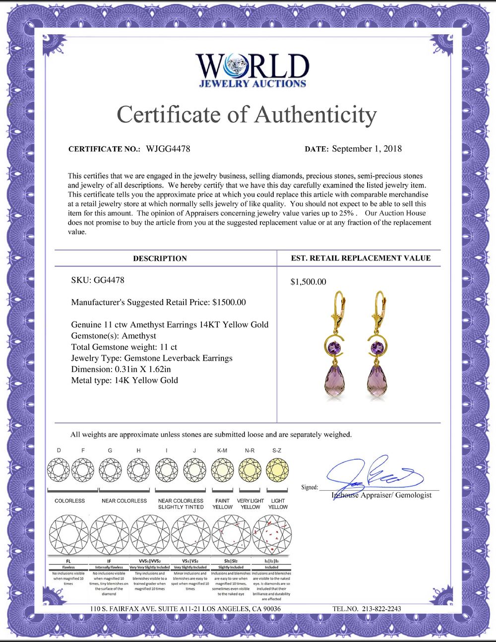 REF-46P7H - SKU: GG4478 ---- Genuine 11 ctw Amethyst Earrings 14KT Yellow Gold