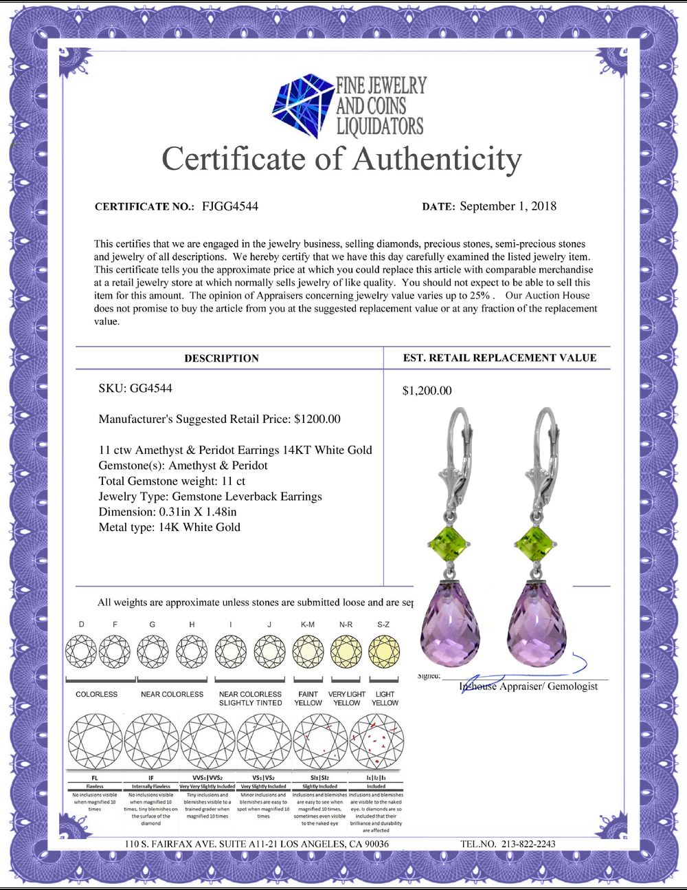 REF-39Y3F - SKU: GG4544 ---- Genuine 11 ctw Amethyst & Peridot Earrings 14KT Rose Gold