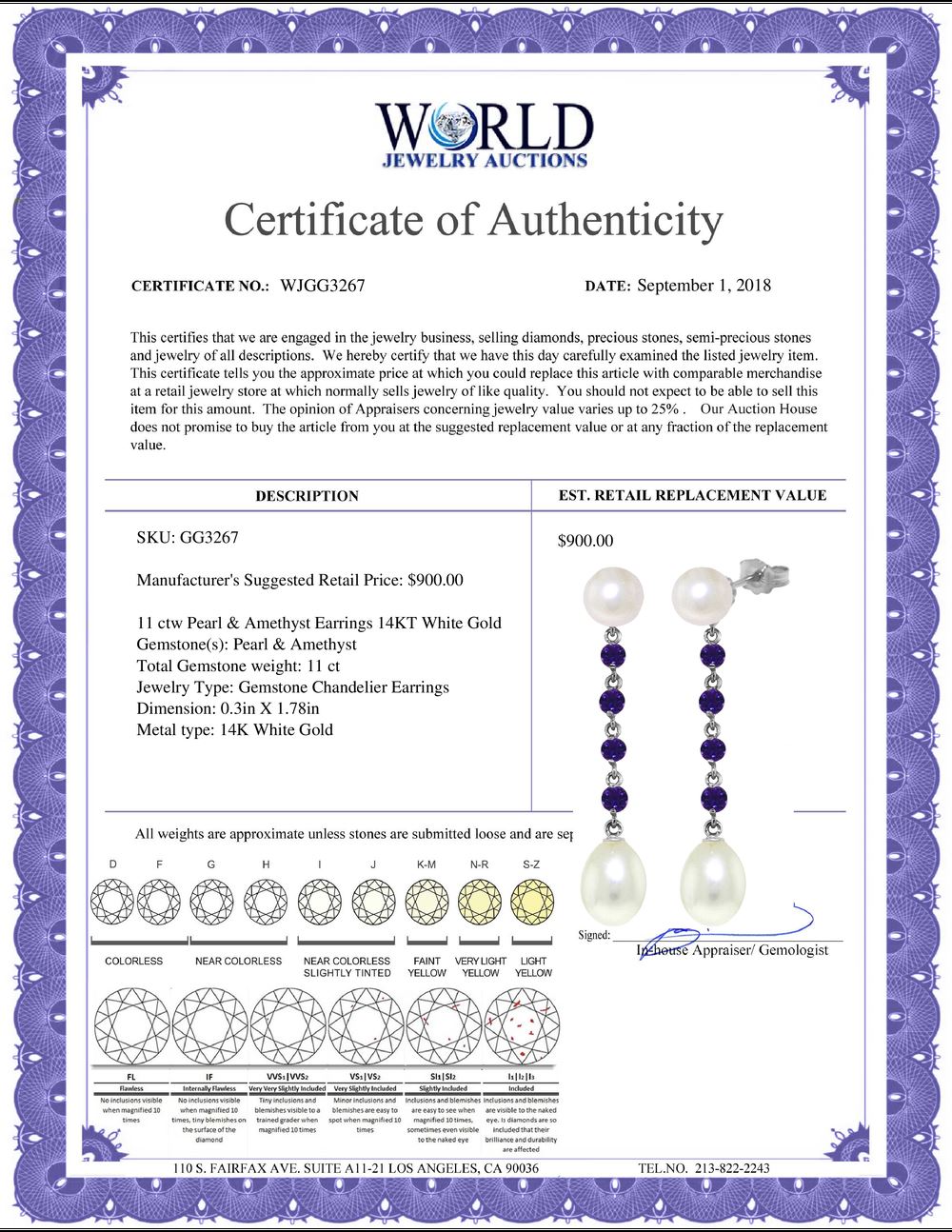 REF-28P8H - SKU: GG3267 ---- Genuine 11 ctw Pearl & Amethyst Earrings 14KT White Gold