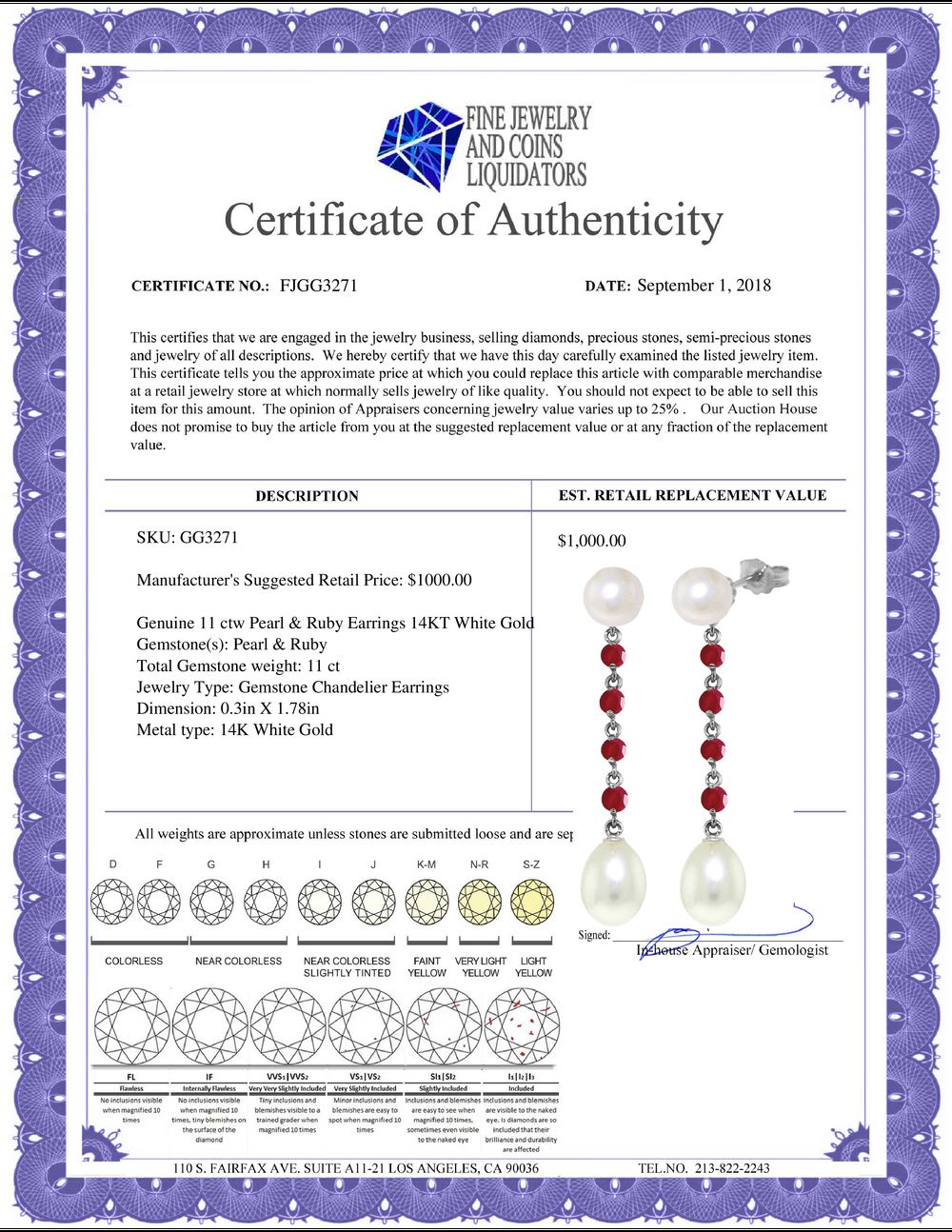 REF-31V4W - SKU: GG3271 ---- Genuine 11 ctw Pearl & Ruby Earrings 14KT Rose Gold
