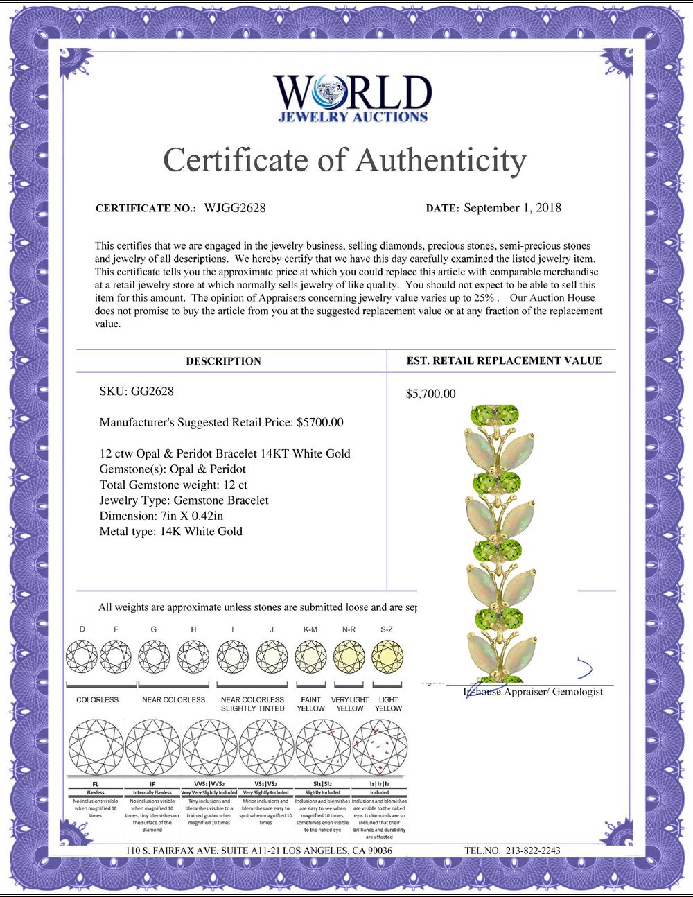 REF-189A3K - SKU: GG2628 ---- Genuine 12 ctw Opal & Peridot Bracelet 14KT White Gold
