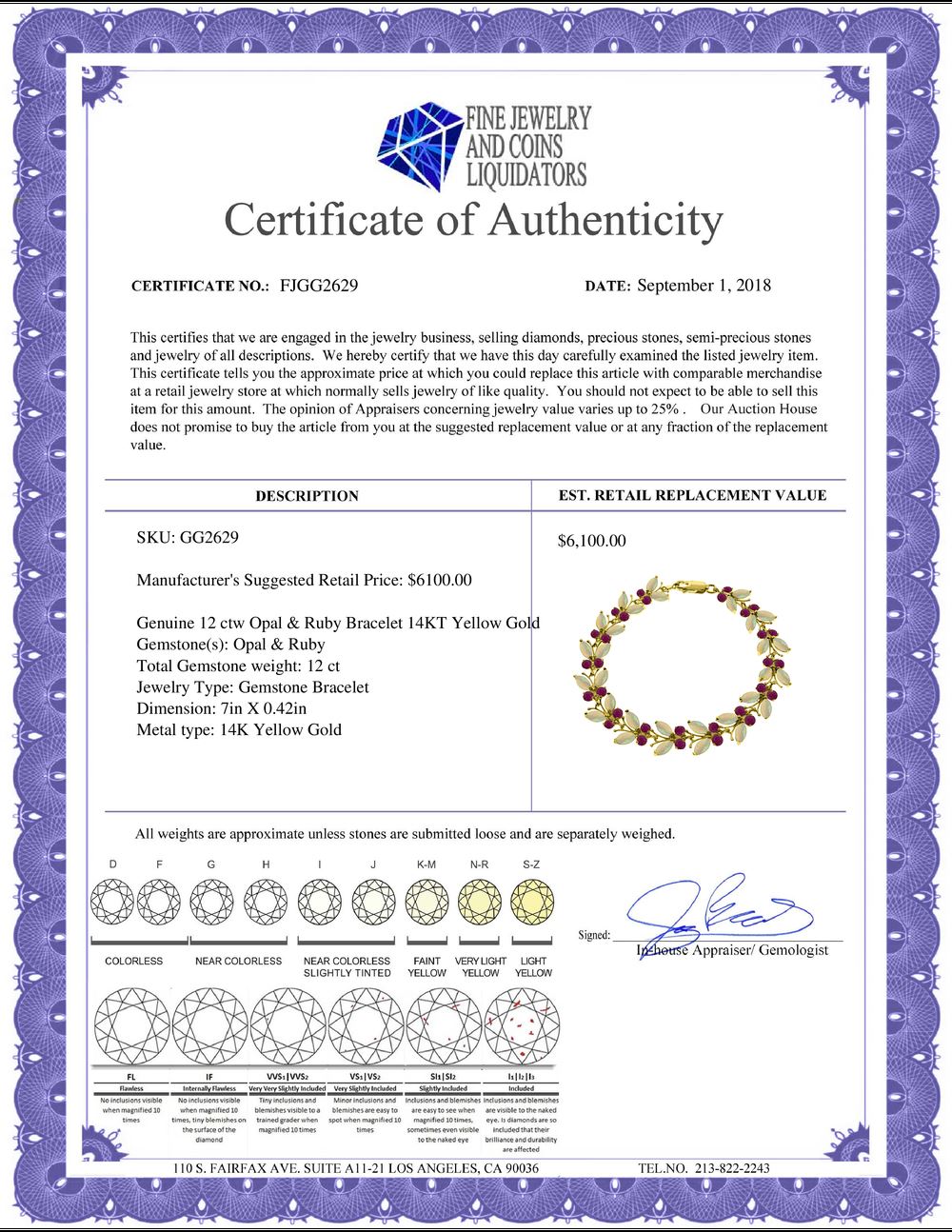 Genuine 14K Yellow Gold 12 ctw Opal & Ruby Bracelet