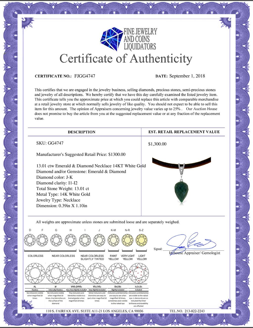 REF-42H4X - SKU: GG4747 ---- Genuine 13.01 ctw Emerald & Diamond Necklace 14KT White Gold