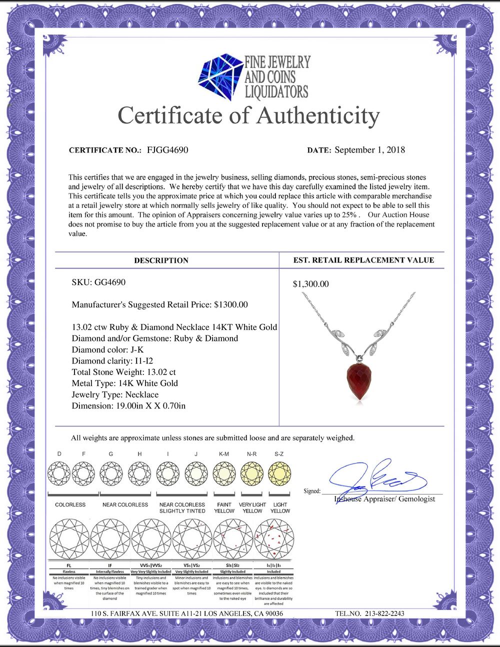 REF-42W2Y - SKU: GG4690 ---- Genuine 13.02 ctw Ruby & Diamond Necklace 14KT White Gold