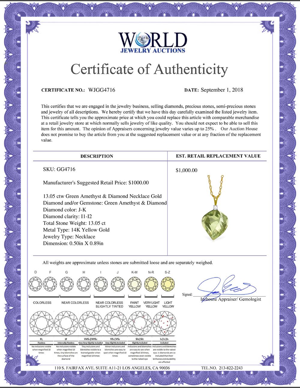 Genuine 14K Yellow Gold 13.05 ctw Green Amethyst & Diamond Necklace