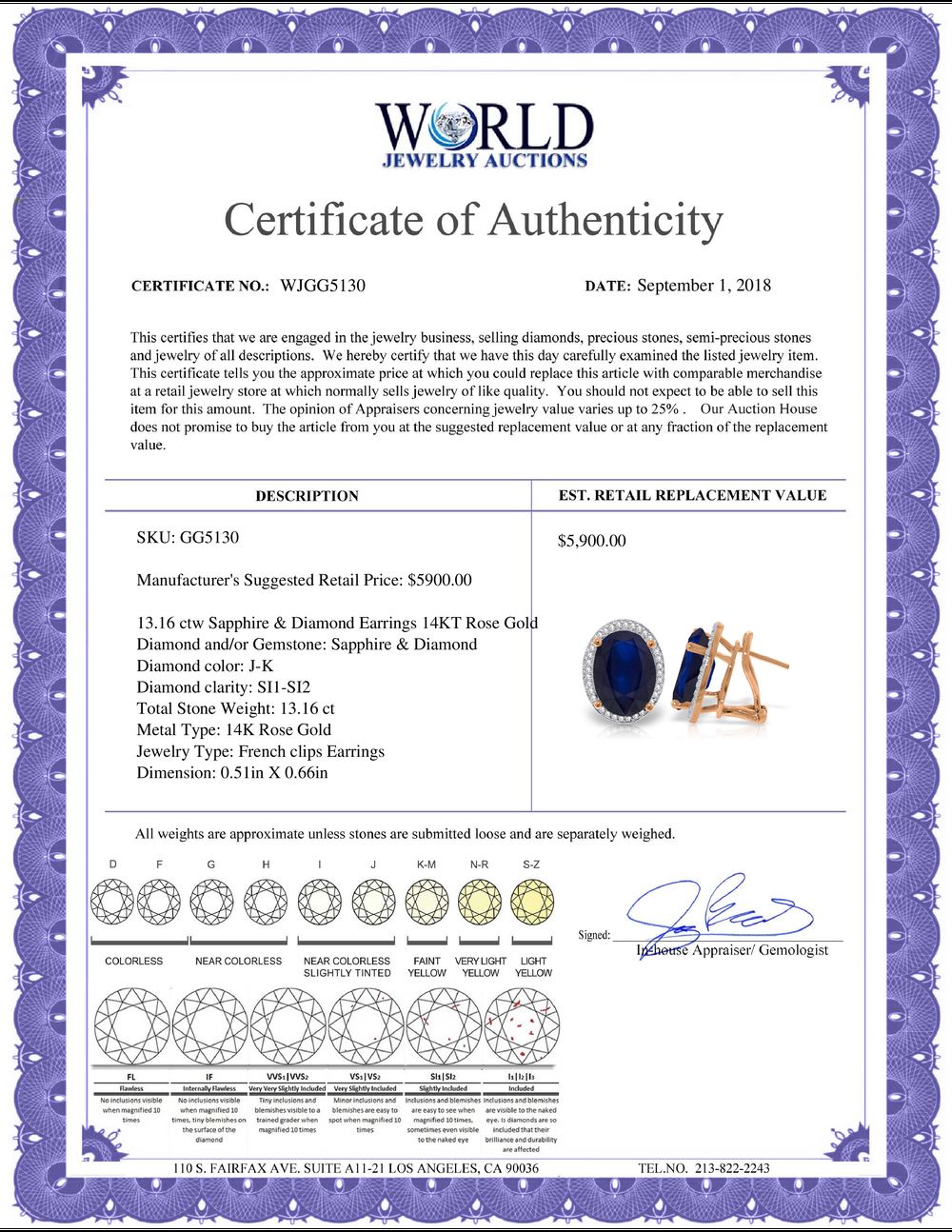 REF-194Z4N - SKU: GG5130 ---- Genuine 13.16 ctw Sapphire & Diamond Earrings 14KT Rose Gold