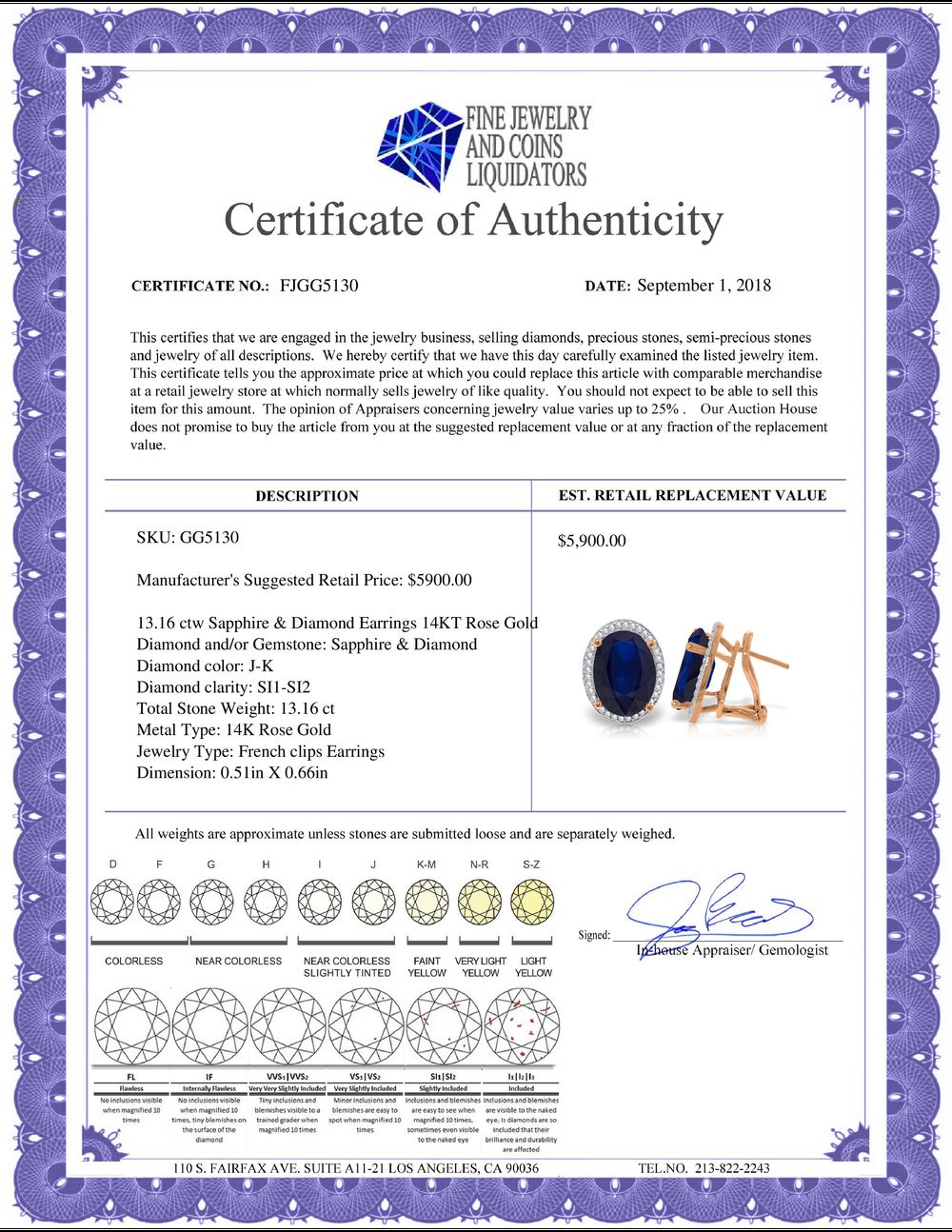 REF-194Z4N - SKU: GG5130 ---- Genuine 13.16 ctw Sapphire & Diamond Earrings 14KT Rose Gold