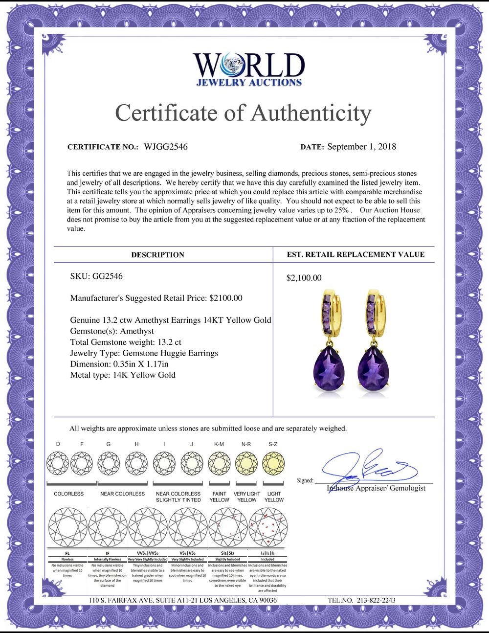 REF-67Z5N - SKU: GG2546 ---- Genuine 13.2 ctw Amethyst Earrings 14KT Yellow Gold