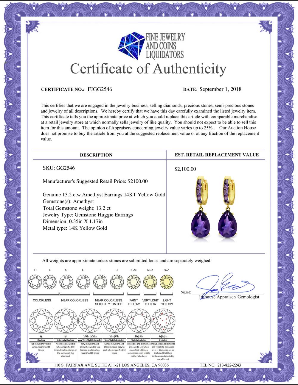 REF-67Z5N - SKU: GG2546 ---- Genuine 13.2 ctw Amethyst Earrings 14KT Yellow Gold