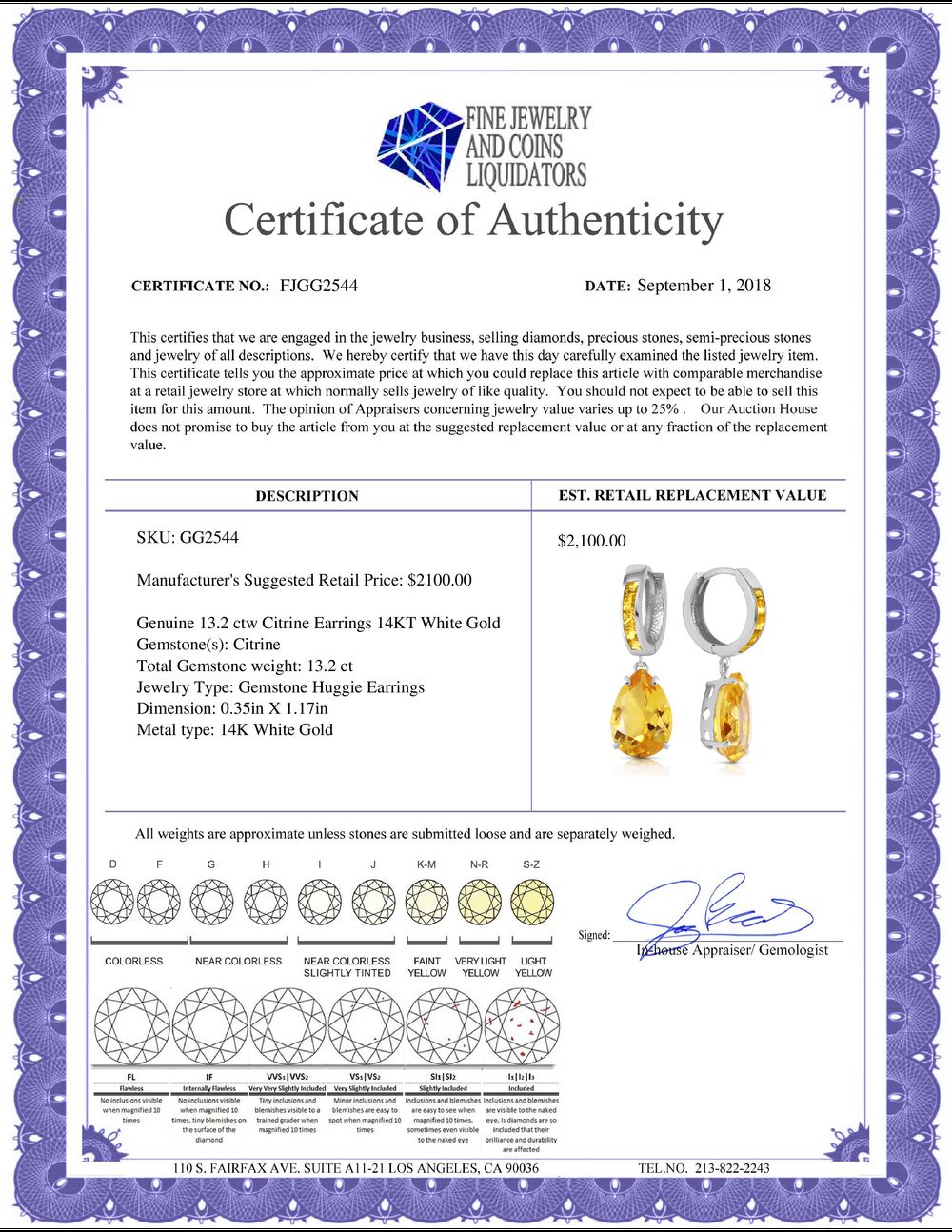 REF-68Z7N - SKU: GG2544 ---- Genuine 13.2 ctw Citrine Earrings 14KT Rose Gold
