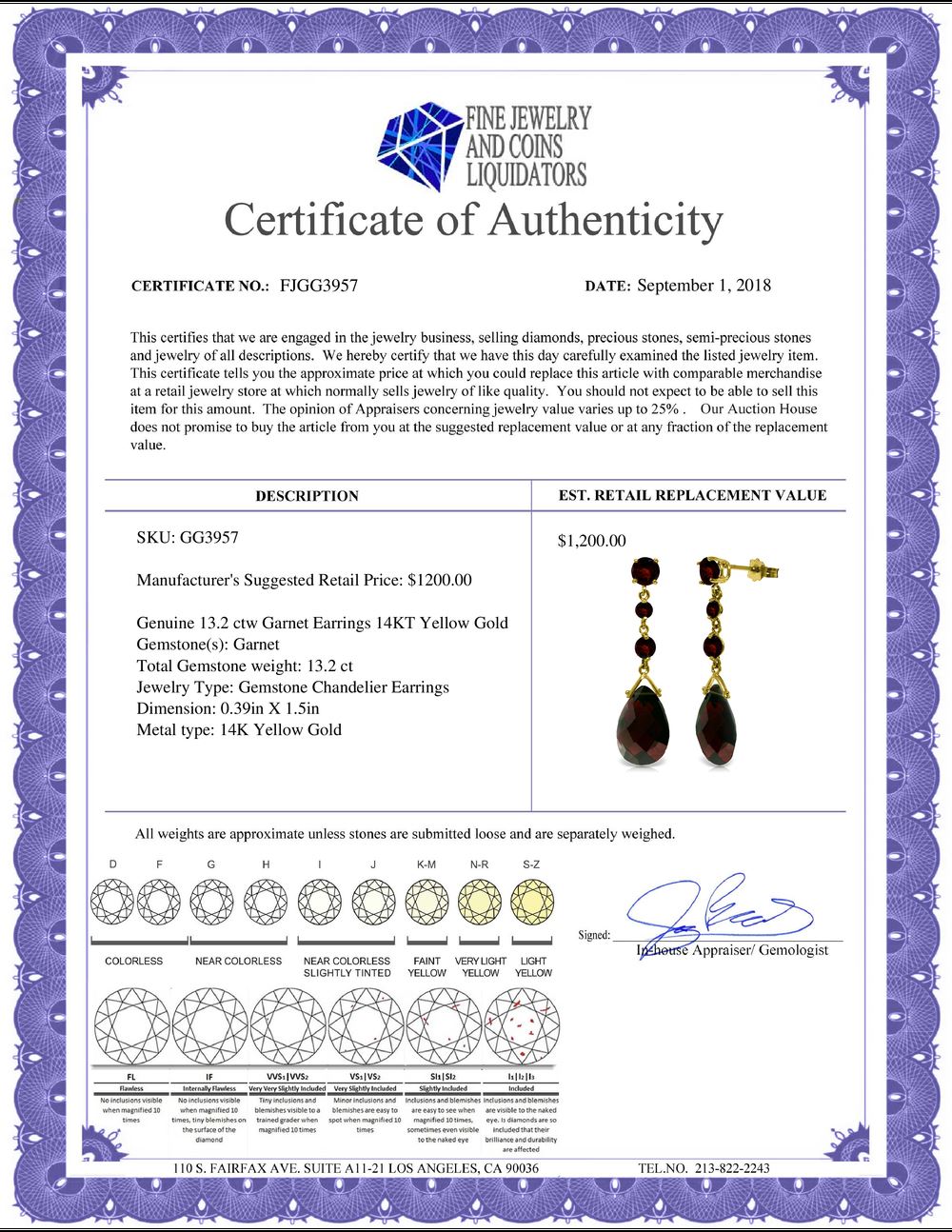 Genuine 14K Yellow Gold 13.2 ctw Garnet Earrings