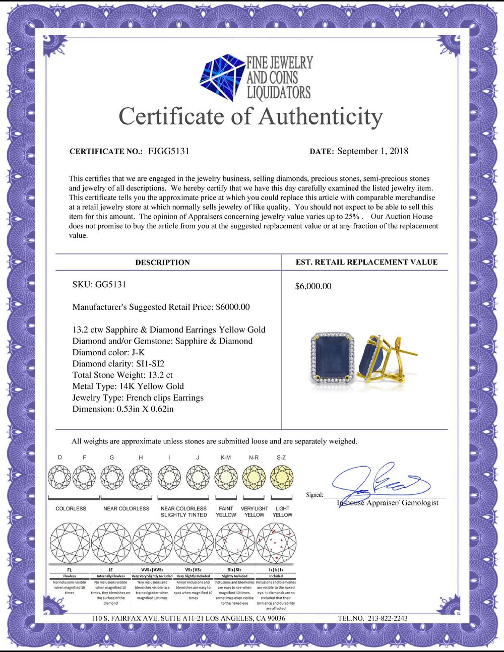 REF-197V5W - SKU: GG5131 ---- Genuine 13.2 ctw Sapphire & Diamond Earrings 14KT Yellow Gold