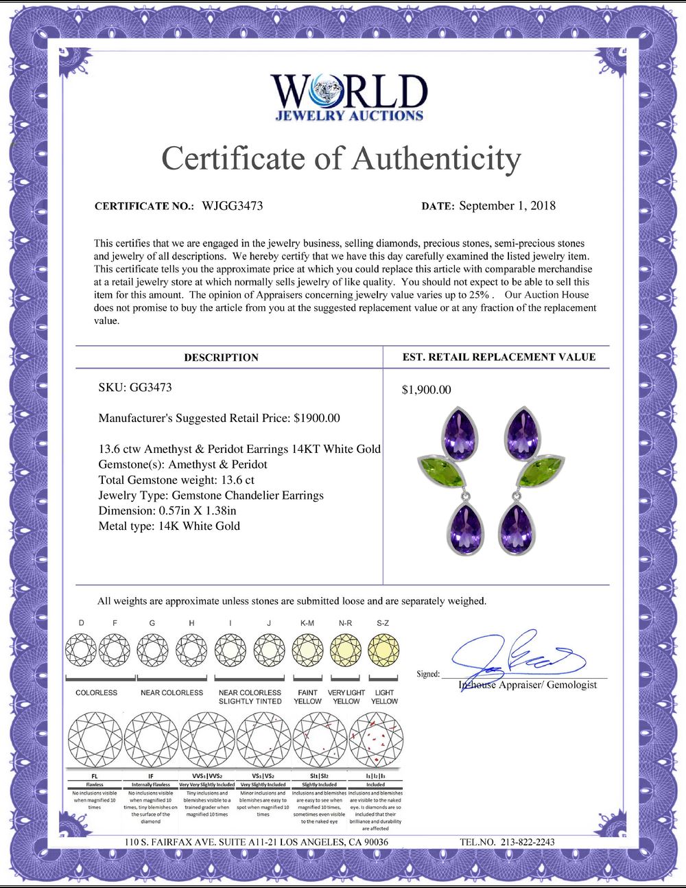REF-62Z4N - SKU: GG3473 ---- Genuine 13.6 ctw Amethyst & Peridot Earrings 14KT Rose Gold