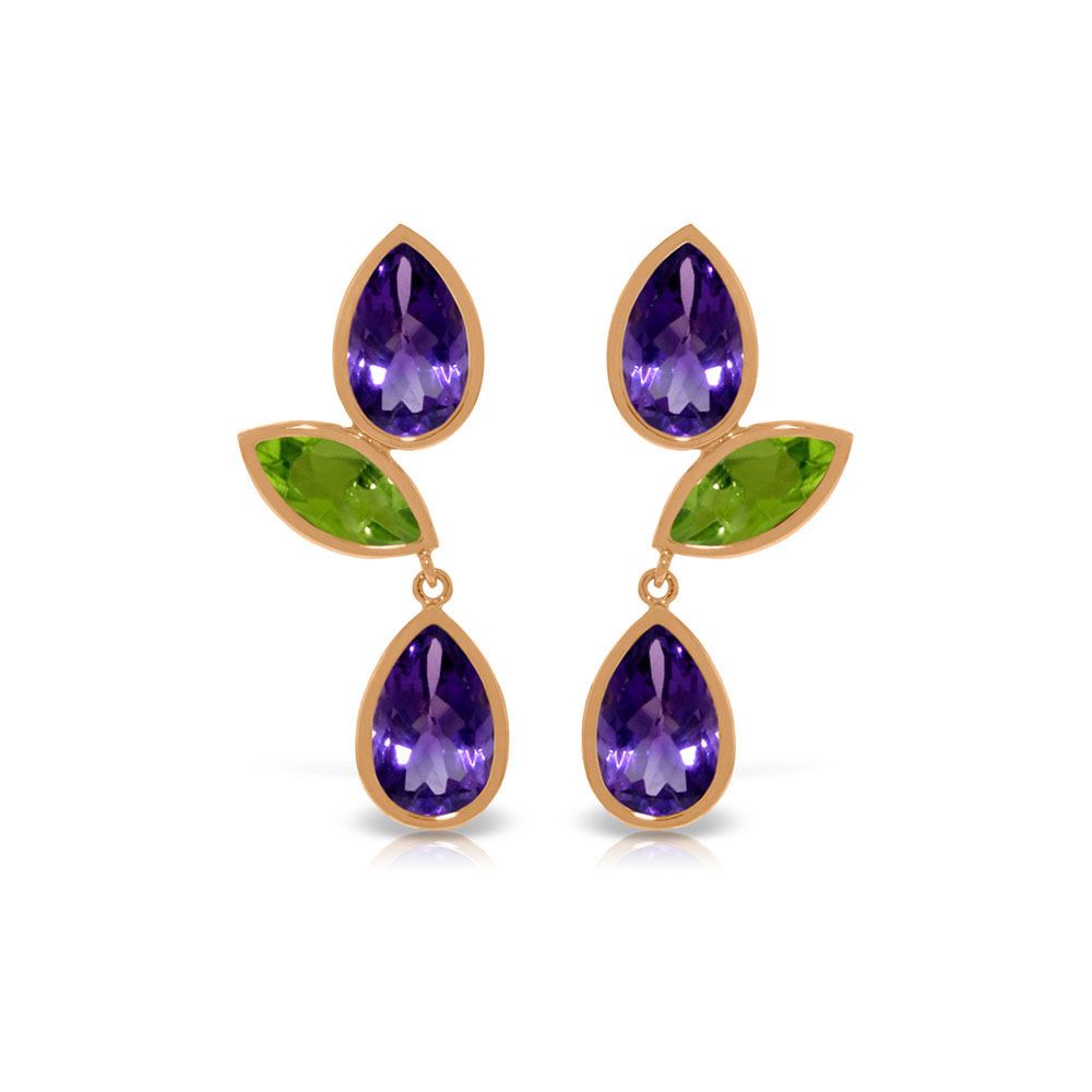 Genuine 14K Rose Gold 13.6 ctw Amethyst & Peridot Earrings