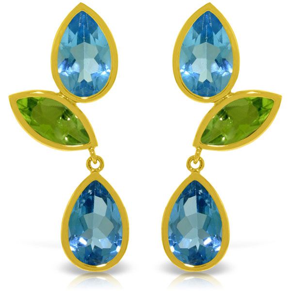 REF-62K4V ---- SKU:GG-3472 ---- Manufacturer's Suggested Retail Price: $1900.00 ---- Genuine 14K Yellow Gold 13.6 ctw Blue Topaz & Peridot Earrings