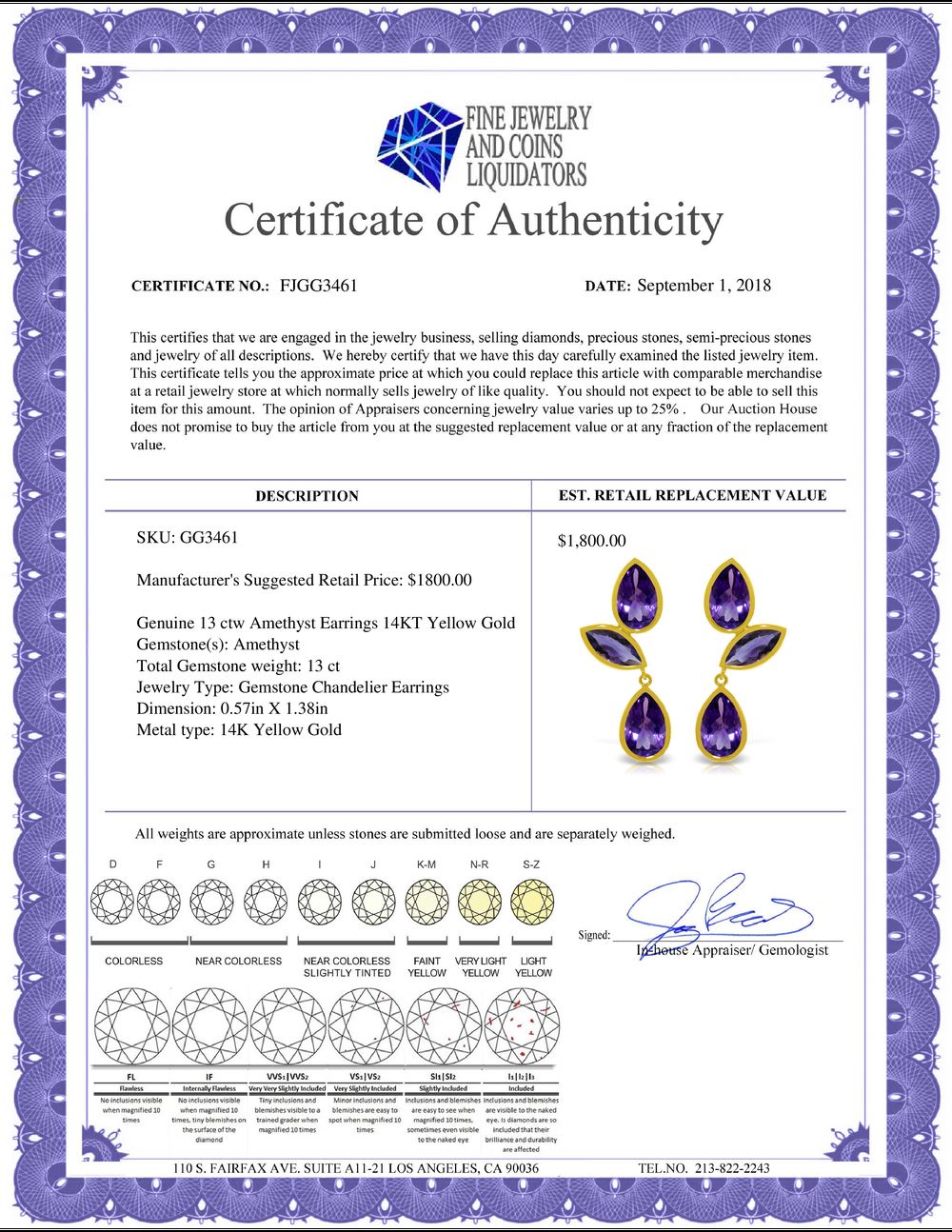 REF-58P7H - SKU: GG3461 ---- Genuine 13 ctw Amethyst Earrings 14KT Yellow Gold