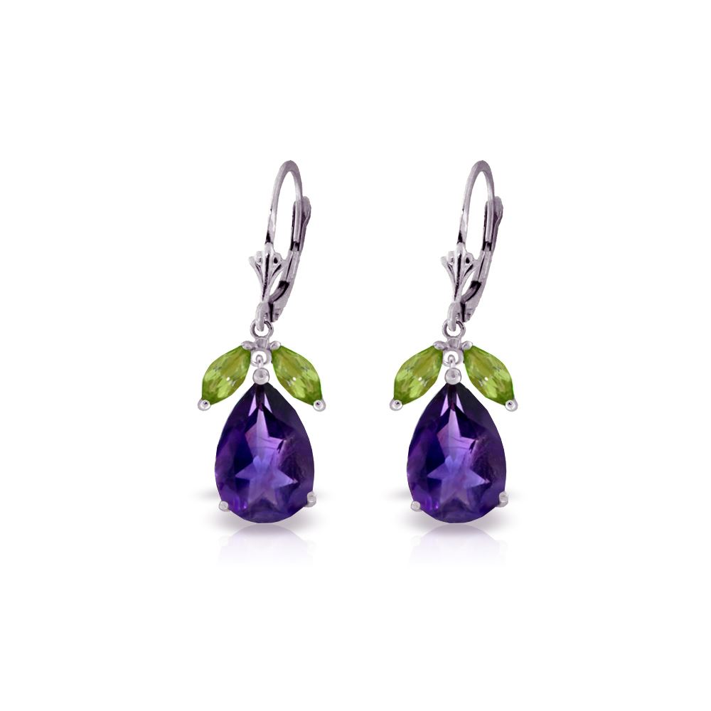 Genuine 14K White Gold 13 ctw Amethyst & Peridot Earrings