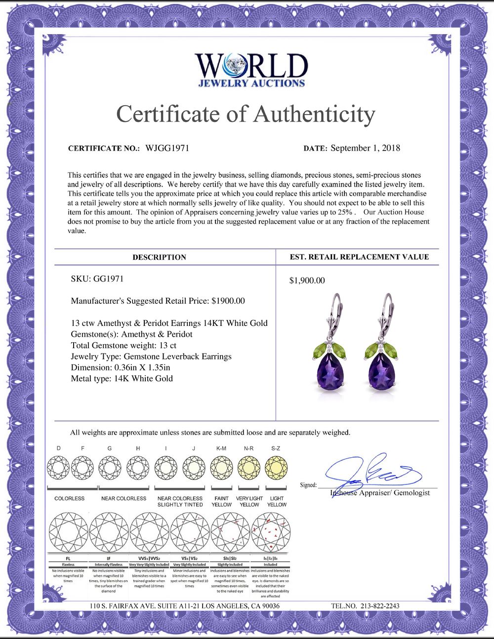REF-61F2Z - SKU: GG1971 ---- Genuine 13 ctw Amethyst & Peridot Earrings 14KT White Gold