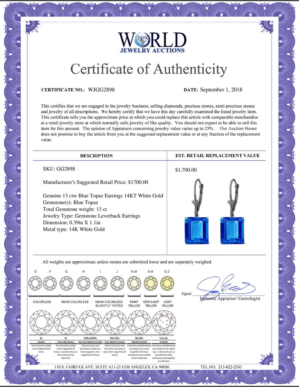 REF-54H2X - SKU: GG2898 ---- Genuine 13 ctw Blue Topaz Earrings 14KT Rose Gold