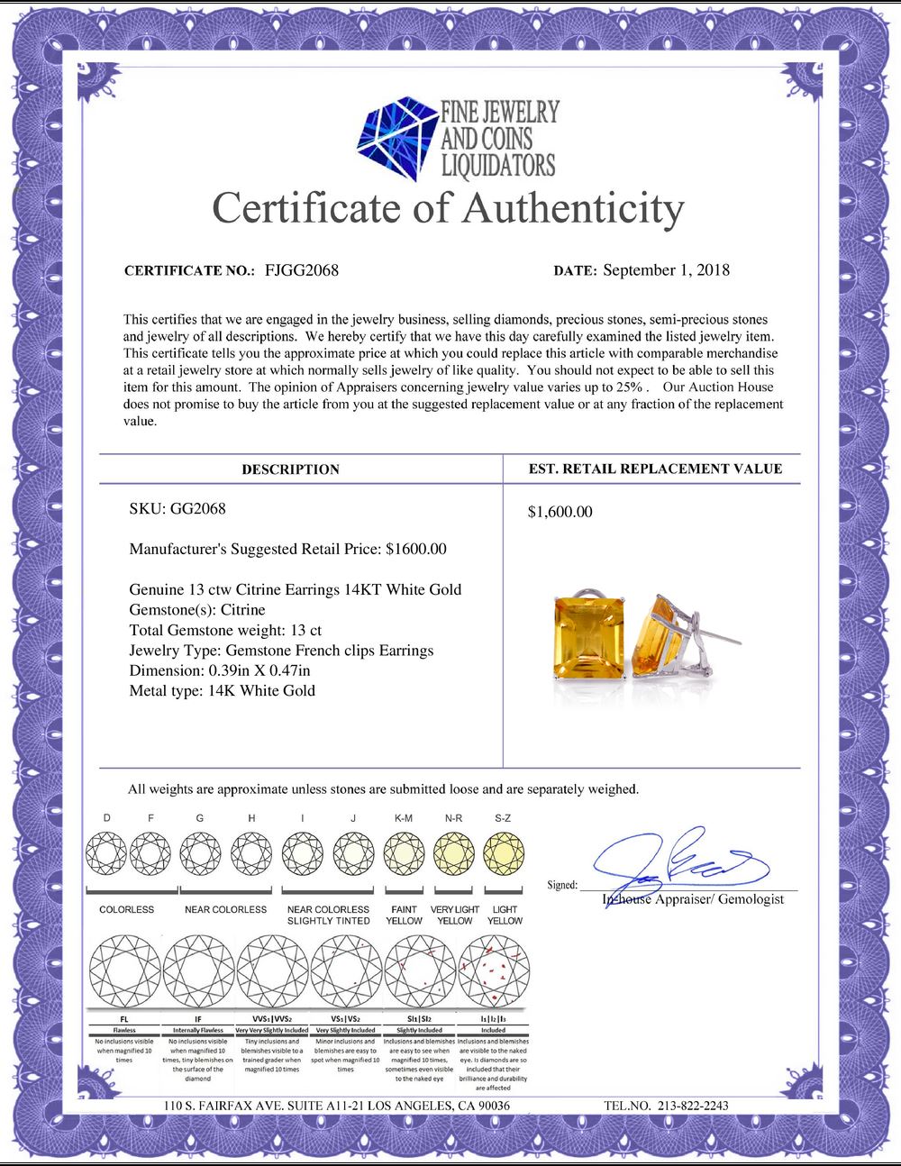REF-53A2K - SKU: GG2068 ---- Genuine 13 ctw Citrine Earrings 14KT Rose Gold
