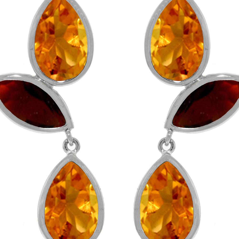 REF-58R7P - SKU: GG3471 ---- Genuine 13 ctw Citrine & Garnet Earrings 14KT White Gold